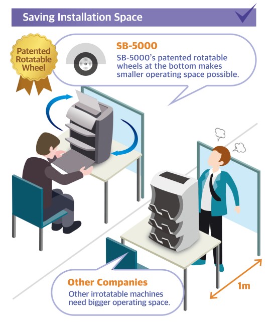 Благодаря доступным вращающимся колесам внизу SB-5000 требует меньшего рабочего пространства.
