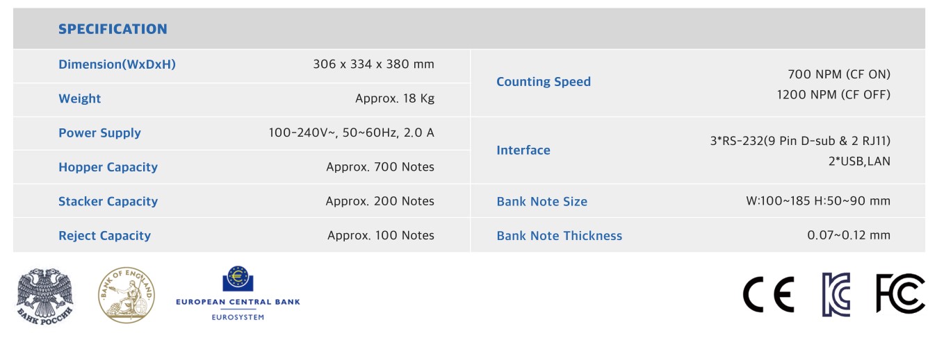 SB-3000 может обрабатывать до 12 валют. Доступны более 50 валют (UZS, USD, EUR, JPY, CNY, GBP, RUB, CAD, AUD и т. Д.).