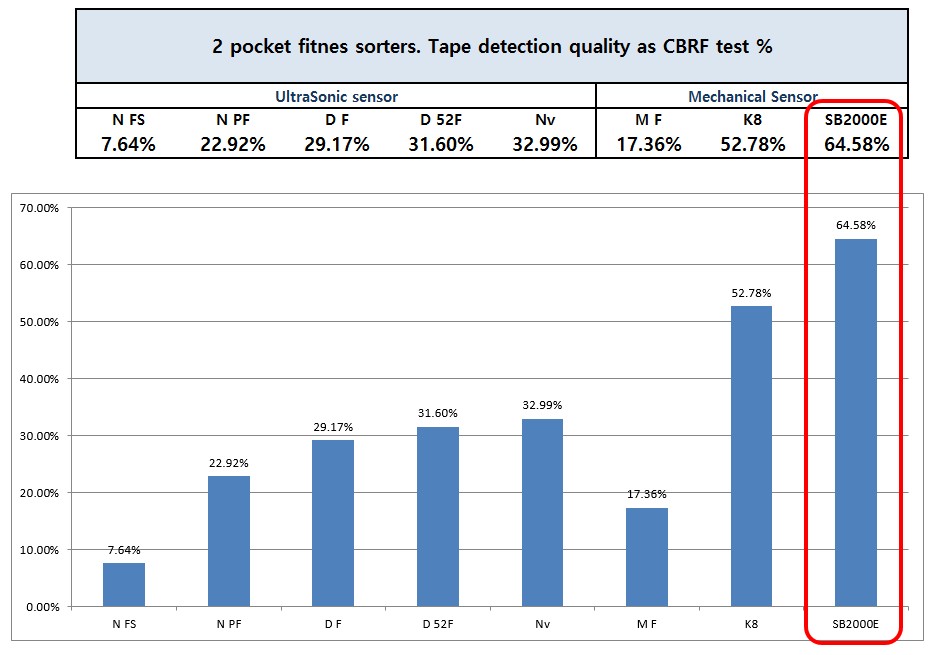 SB-2000, SB-3000 и SB-5000 используют один и тот же модуль механического обнаружения скотча. Он показывает производительность, превосходящую любые другие машины.