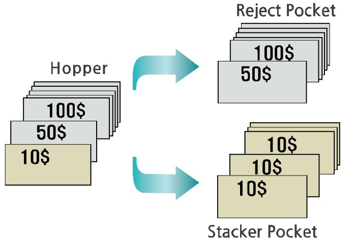 SB-9 - это 2 карманный сортировщик с высоким разрешением способный определять валюту.